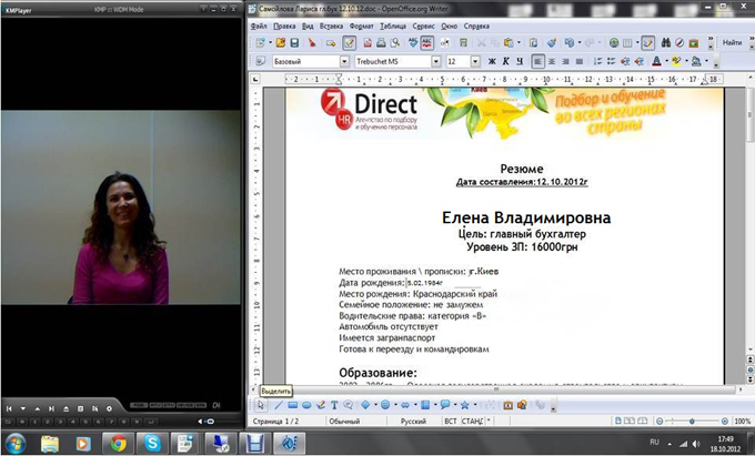Обязательно необходимо подготовиться к видеособеседованию: отредактировать резюме по основным пунктам, подготовить вопросы, с учетом пожеланий Работодателя; проверить все ли работает, особенно если собеседование проводится по Skype. Если все в порядке, выводим на экран видео и резюме. После чего запускаем программу.